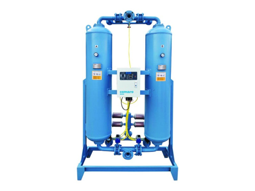 Адсорбционный осушитель Comaro AD 75 – модель, разработанная итальянскими инженерами Comaro Compressors. Представляет собой компактный модуль из 2-х алюминиевых колонн, системы автоматического управления и эффективных магистральных фильтров. Осушитель поддерживает стабильно низкую точку росы -40°C и удаляет 100% влаги в пневмосетях с давлением до 16 бар. Современное адсорбирующее вещество впитывает не только влагу, но и пары масла, имеет увеличенный срок службы, легко меняется при плановом обслуживании.