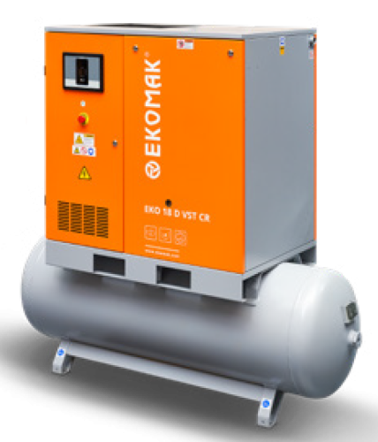 Маслозаполненные винтовые компрессоры Ekomak серии EKO GCR оснащены редукторной передачей, которая позволяет передавать крутящий момент ещё более эффективно, чем привычный прямой привод. Блягодаря этому сократилось энергопотребление и увеличилась производительность. Также на все модели устанавливается винтовой блок Atlas Copco, отличающийся высокой надёжностью и качеством работы. Благодаря такой компановке, уровень шума компрессора составляет 63 дБ. Компрессор комплектуется двигателем IE3 класса F со степенью защиты IP55. Серия EKO GCR дополнительно оснащается удобным и интуитивным контролером управления, фильтром сжатого воздуха, влагоотделителем и маслоотделителем.